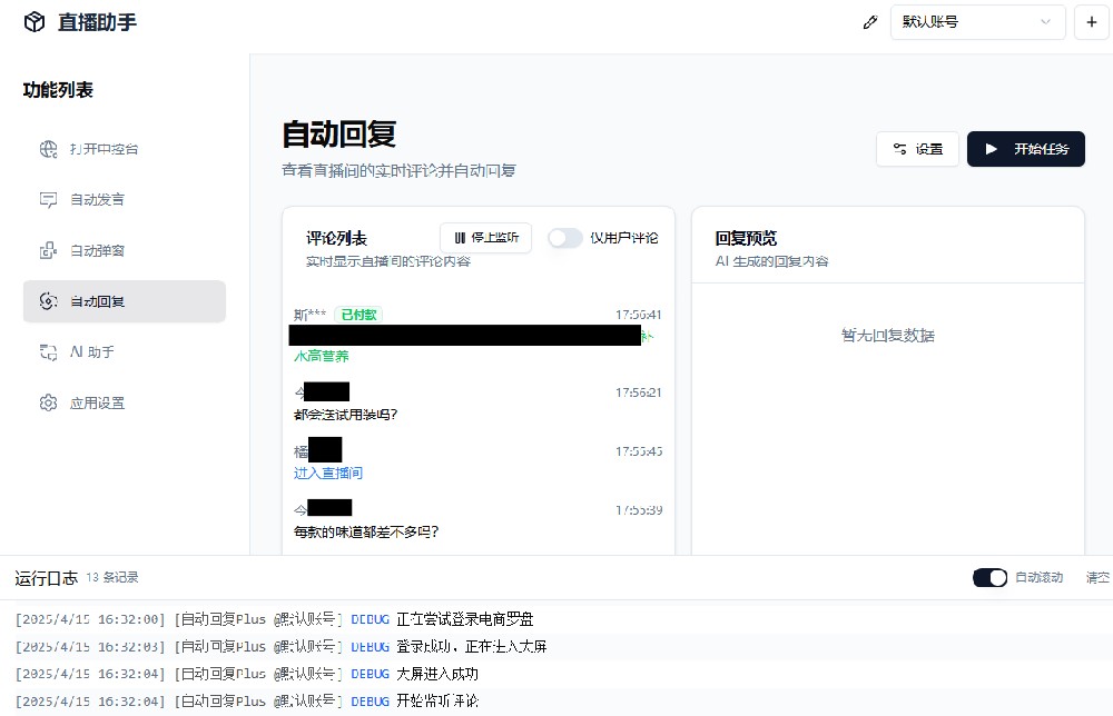 B站/抖音直播万能场控机器人,弹幕+答谢+回复+点歌···